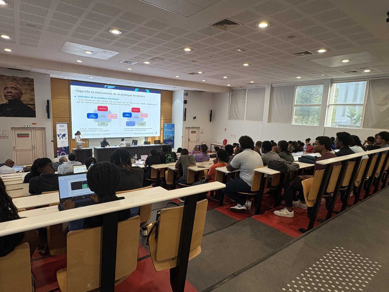 Près de 80 étudiants (Licence 3 Économie-Gestion, Masters Économie appliquée et Monnaie Banque Finance Assurance), ainsi que plusieurs enseignants, ont assisté à cette présentation.