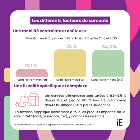 À l’instar des autres territoires ultramarins, l’archipel de Saint‑Pierre‑et‑Miquelon subit les facteurs structurels de la vie chère en Outre‑mer. L’insularité et l’éloignement géographique, l’exiguïté du marché local et la faiblesse de la concurrence y prennent une acuité particulière.