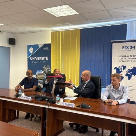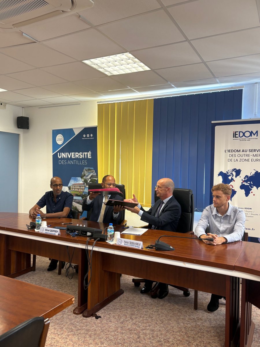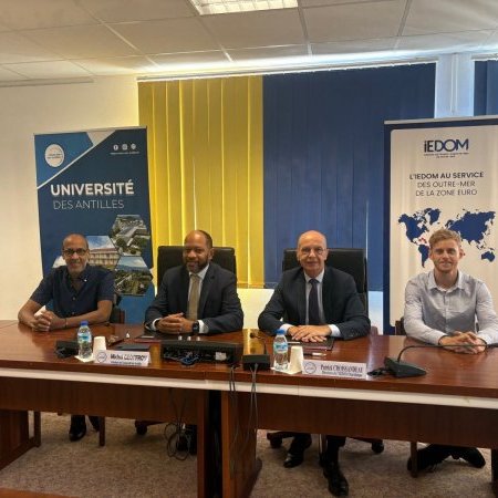 À cette occasion, étaient présents Monsieur GEOFFROY, le président de l’Université des Antilles, Monsieur JOSEPH, le doyen de l’Université des Antilles, Monsieur CROISSANDEAU, Directeur de l’IEDOM Martinique et Monsieur BOILEAU, Responsable du Service des études et des établissements de crédit à l’IEDOM Martinique.