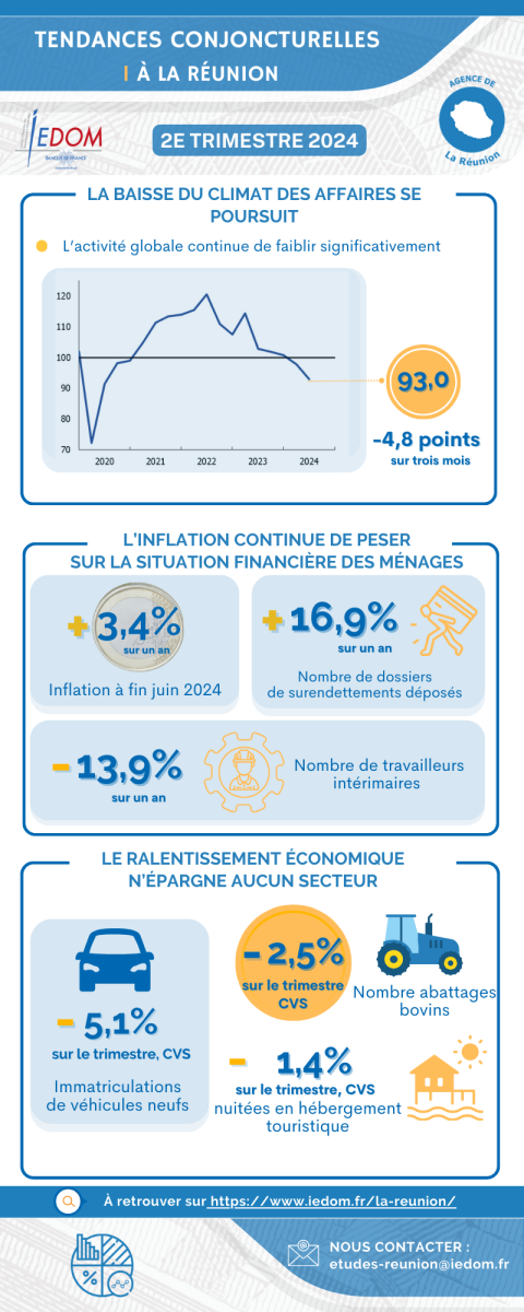 Selon les chefs d’entreprise interrogés, l’activité économique a continué de faiblir sur le territoire par rapport à son niveau moyen. Certes, l’inflation baisse graduellement au 2e trimestre, mais elle continue de peser sur la situation financière des ménages et leur niveau de consommation. Le marché du travail montre des signes d’atonie. L’investissement des entreprises est mal orienté, tandis que le marché immobilier résidentiel poursuit son ralentissement.